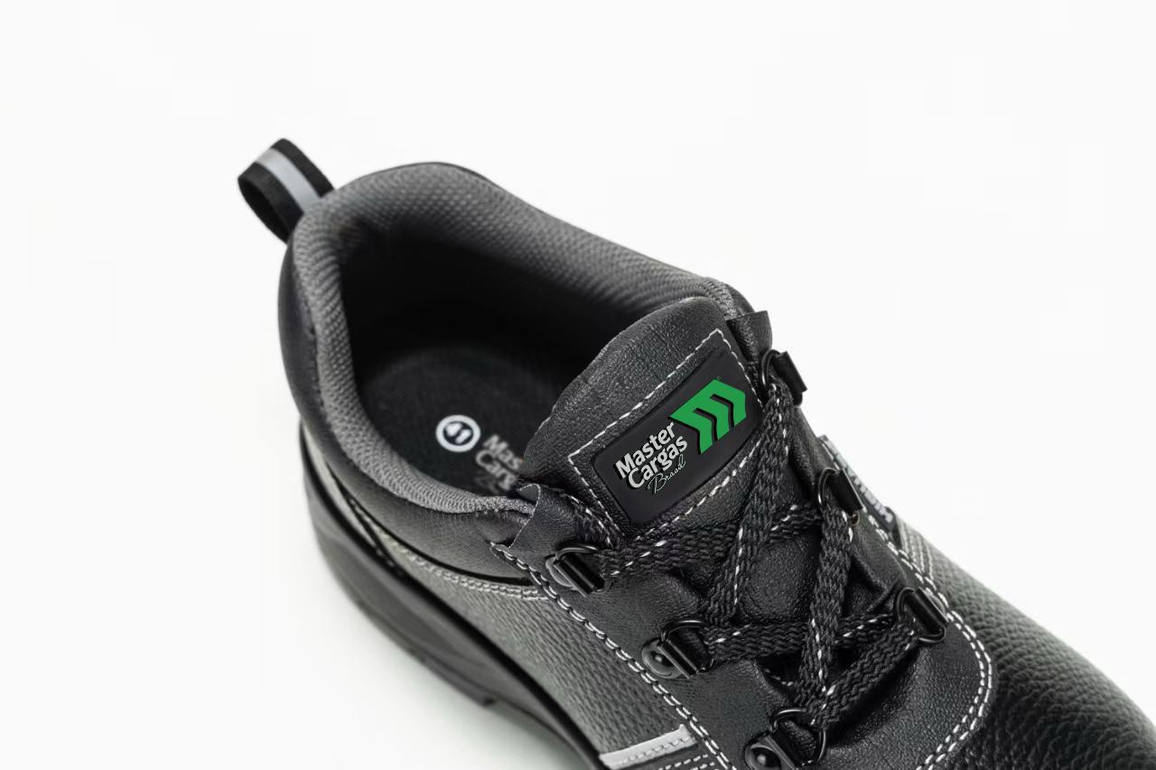 Bota de segurança preta, de cano baixo, com solado de poliuretano de dupla densidade (PU + PU)