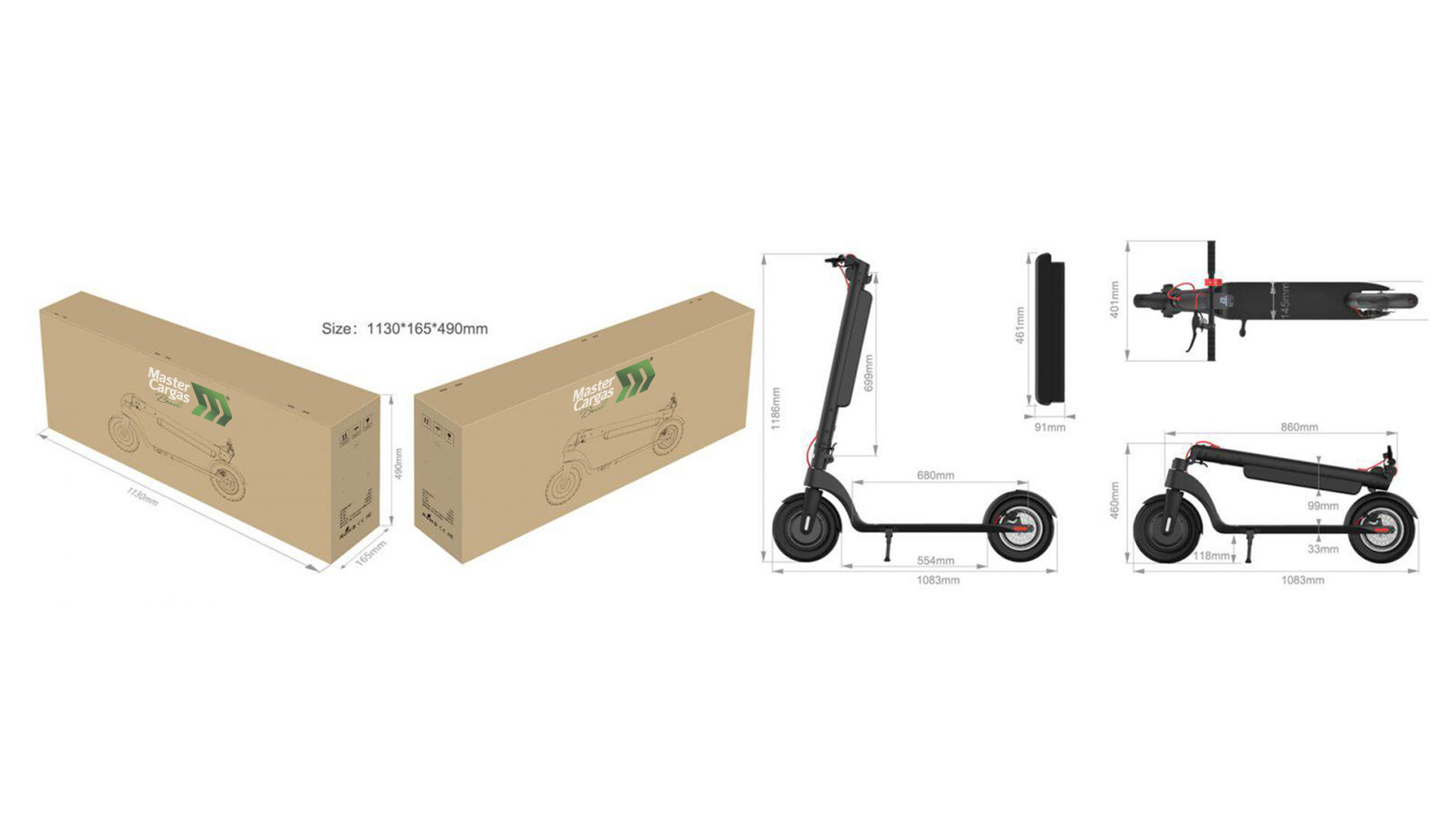 Potência de 350W – Bateria de Lítio – 100% Elétrico – Freio a Disco e aproximada de 45km/h de velocidade máxima.